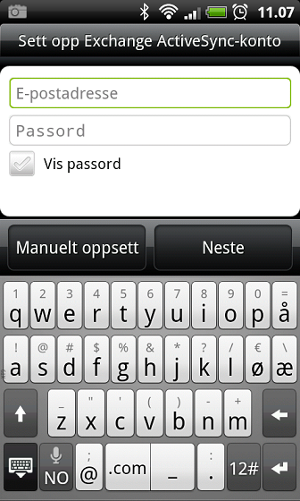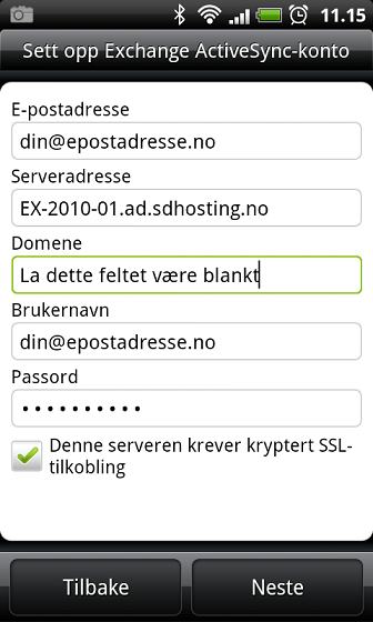 Følgende er en veiledning for å sette opp din Hosted Exchange-konto på Android-enheter. Dersom du ikke er komfortabel med å bytte mellom vinduer kan du med fordel skrive ut denne veiledningen.