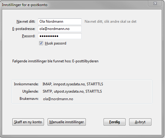 Du behøver passordet for din epostkonto underveis i oppsettet. Dersom du er usikker på passordet kan du logge på kontrollpanelet for å hente ut dette, eller for å sette et nytt passord.