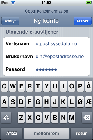 Du behøver passordet for din epostkonto for å sette opp kontoen. Dersom du er usikker på passordet kan du logge på kontrollpanelet for å hente ut dette, eller for å sette et nytt passord.